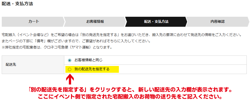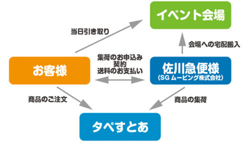 宅配搬入は、当店からイベント側が指定する配送先・手順でお荷物を直送する方法です。