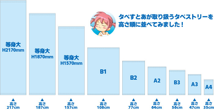 タペストリーのサイズバリエーションが増えたため、各商品ページに比較画像を追加いたしました。
